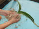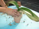 (みずごけ F)両手の親指でギュッと押さえつけます。